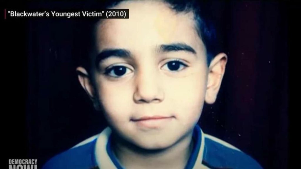 2007 സെപ്റ്റംബർ പതിനാറിന് ബാഗ്ദാദിലെ നിസൗരി ചത്വരത്തിൽ അമേരിക്കൻ സ്വകാര്യ കമ്പനിയായ ബ്ലാക്ക് വാട്ടർ സെക്യൂരിറ്റി കൺസൾട്ടിങ് എന്ന കമ്പനിയിലെ ഒരു കൂട്ടമാളുകൾ ഒരു കവചിത വാഹനത്തിനു മുകളിൽ ഘടിപ്പിച്ച ഓട്ടോമാറ്റിക്ക് തോക്കുകളിലൂടെ ഒരു കാരണവുമില്ലാതെ സാധാരണക്കാരായ ആളുകളെ പല റൌണ്ട് വെടിവച്ചതിൽ മരിച്ച പതിനാലു പേരിൽ ഏറ്റവും പ്രായം കുറഞ്ഞത് ഒൻപത് വയസുകാരൻ അലിയായിരുന്നു. വെടിവയ്പ്പ് കഴിയുന്നത് വരെ കാറിൽ ഉണ്ടായിരുന്ന എല്ലാവരും തലതാഴ്ത്തി ഇരിക്കുകയും വെടിവയ്പ്പ് കഴിഞ്ഞു എല്ലാവരും രക്ഷപെട്ടു എന്ന് വിചാരിച്ച് മകനെ വാരിയെടുത്ത ബാപ്പ മുഹമ്മദ് കിനാനിയുടെ കാൽക്കലേക്കു വെടിയേറ്റ് പിളർന്ന തലയിൽ നിന്ന് ആ കുട്ടിയുടെ തലച്ചോർ വീഴുകയായിരുന്നു.