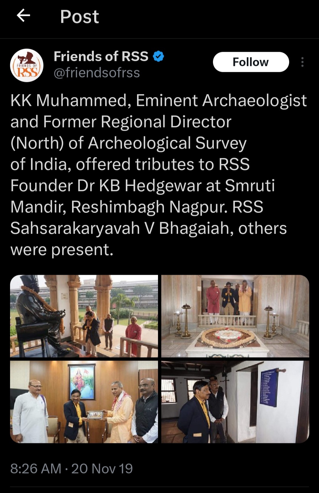 തന്റെ സ്വപ്നത്തിൽ ശിവൻ വന്ന് അമ്പലം സംരക്ഷിക്കാൻ പറഞ്ഞു എന്നാണ് ആർക്കിയോളജിസ്റ് കെ കെ മുഹമ്മദ് ഒരു ഇന്റർവ്യൂവിൽ പറഞ്ഞത്. എത്ര മാത്രം മുൻവിധിയോടെ ആയിരിക്കും ഇതിന് ശേഷമുള്ള ഉത്ഖനനവും പുനരുദ്ധാരണവും ഒക്കെ സംഭവിച്ചിരിക്കുക എന്നത് ശാസ്ത്രീയ ചിന്താഗതിയുള്ള ആളുകകൾക്ക് പെട്ടെന്ന് മനസ്സിലാക്കേണ്ടതാണ്. അയോധ്യയിലെ ഇദേഹത്തിന്റെ എല്ലാ വാദങ്ങളും ഇതുപോലെ മുൻവിധിയോടെ ഉള്ളതാണെന്ന് നമുക്ക് കാണാൻ കഴിയും.